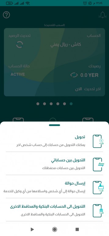 - من القائمة الرئيسية اختر تحويل أموال → تحويل بين حساباتي، و