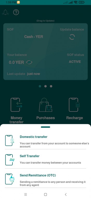 4) Send remittance(money transfer) : This feature allows to transfer money to anyone “not user” and receive money by Transfer number from the nearest approved agent in Cash service